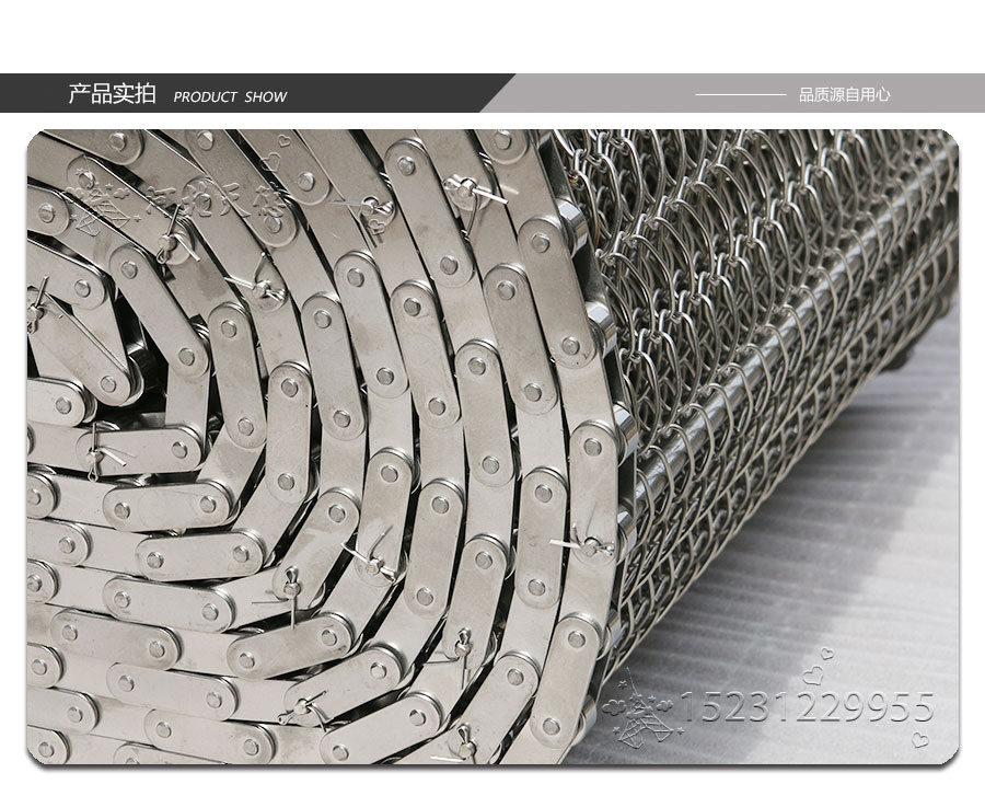 不銹鋼網帶屬于非標準件,我們將根據你提供的規格長寬,材質,絲徑,編制結構尺寸,支軸直徑,支軸間距,鏈條型號等數據核算成本和制作.