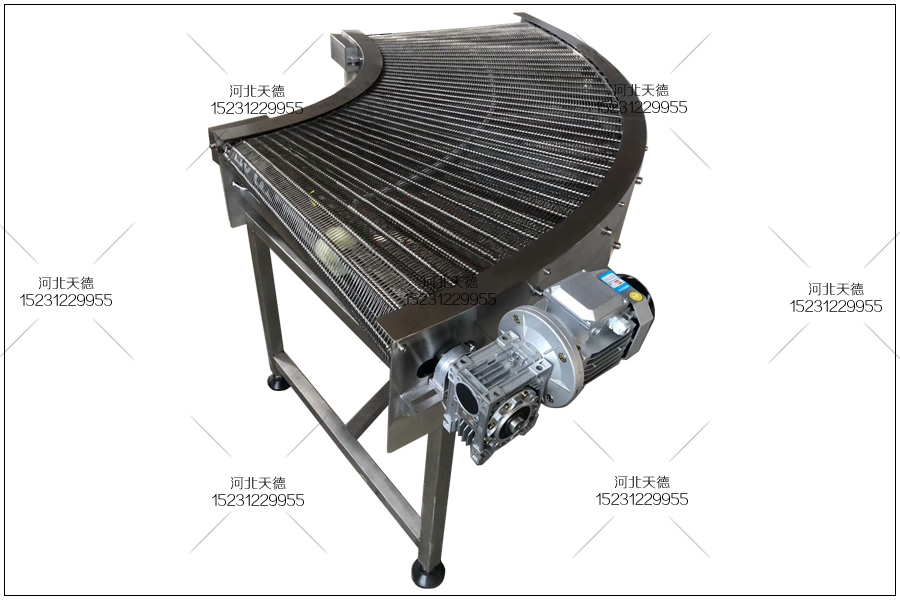 江西撫州客戶定制的轉(zhuǎn)彎網(wǎng)帶輸送機(jī),用來加工輸送餅干,將生產(chǎn)好的餅干輸送到下一個工序進(jìn)行包裝,這種輸送機(jī)采用鏈條式轉(zhuǎn)彎輸送帶,輸送帶內(nèi)徑鏈條節(jié)距為31.75毫米,外徑輸送鏈條的節(jié)距為50.8毫米,轉(zhuǎn)彎網(wǎng)帶輸送機(jī)采用不銹鋼304耐高溫耐腐蝕材質(zhì)板材進(jìn)行加工,能在水里或者高溫情況下長期使用。